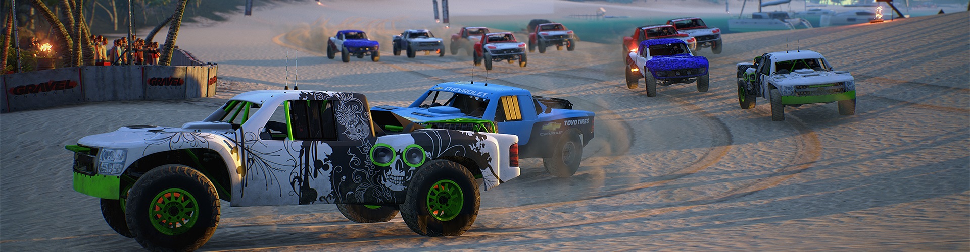 I particularly enjoyed the elimination races, a mode in which you want to be any position but last. This mode will frequently remove the player who is in last place, every twenty to thirty seconds. It’s a thrill, that’s for sure. Unlike other racing games, cars are not purchasable. Instead, new additions to the game will be made available through natural progression. The more you play, the more you will have access to, simple. The season pass for Gravel is quite chunky, and includes five planned expansions. These expansions will feature; new tracks, new cars, new vehicle categories, new environments, and new career episodes. Sound-wise Gravel features your standard, unobtrusive background music. Engine noise is fairly accurate.
