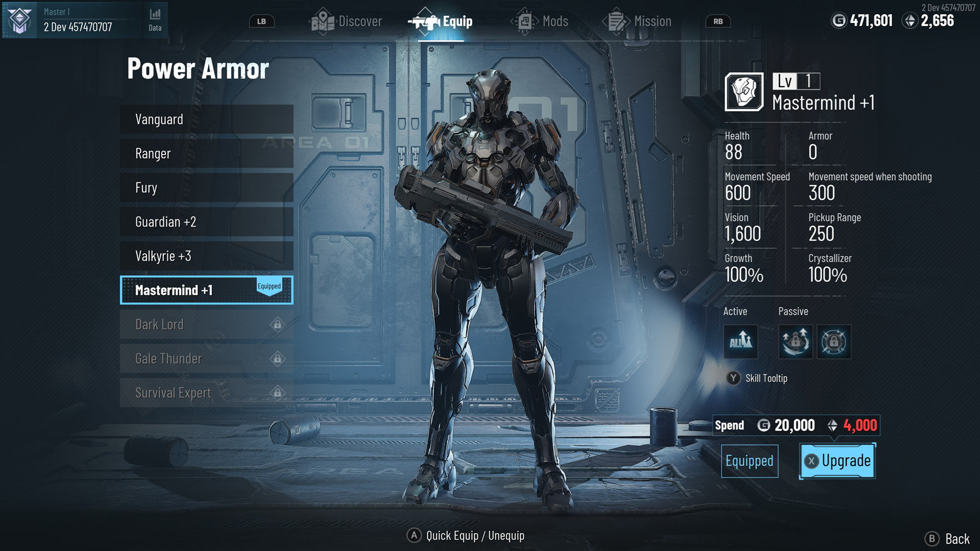 The currency can be used to upgrade or unlock a variety of different cyborg chassis, weapons, equipment and mods. Mods are the most interesting, they bestow different perks and in the beginning there is a limited number that can be attached – a respawn mod is super useful but costs 12 slots to place, so it might be better to have some lower cost weapon and equipment buff instead.