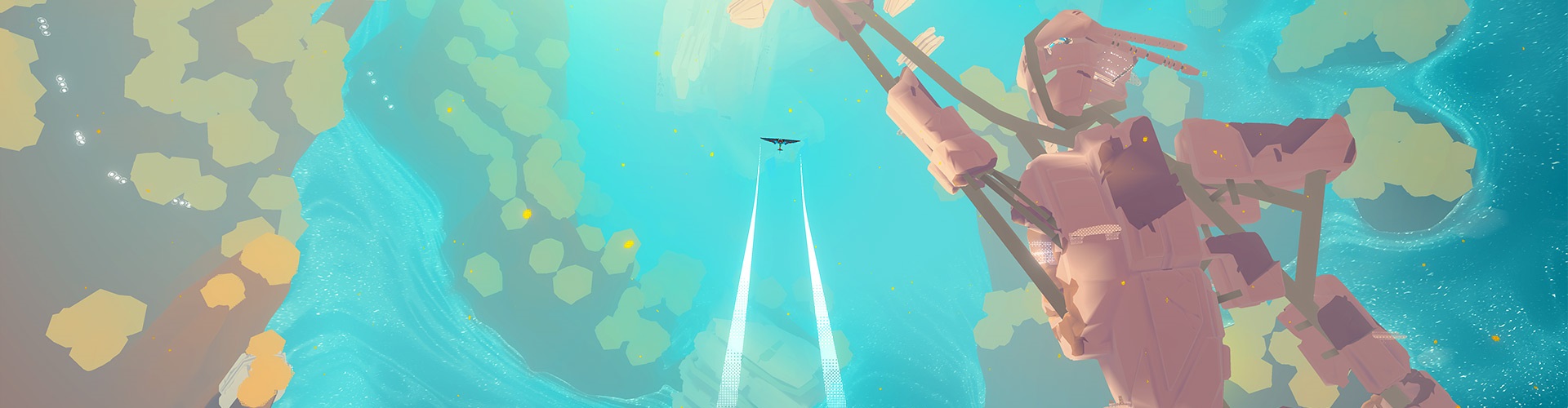 You take the role of a cartographer (Cart) who has been hired by an archaeologist that serves as your narrator for the game, appearing as a submarine. Collecting relics for the archaeologist will allow him to study them further, helping you to discover the truth and mystery within. This will also upgrade your ship in such a way that you can even explore the water areas by diving, expanding the game even further. There’s a variety of collectibles scattered throughout the inverse, such as wind. Wind is shown as white orbs suspended in the air which – given the proper approach – can be collected quite easily in rapid succession.