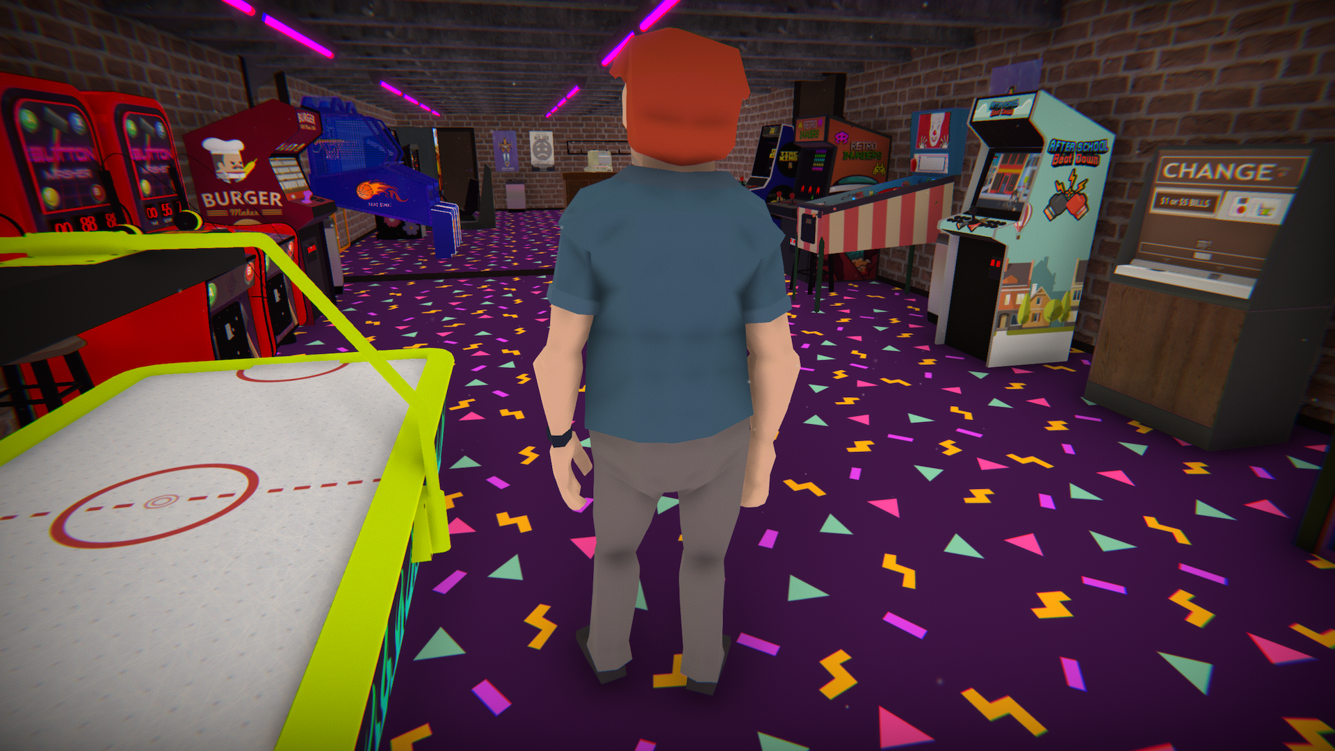 The graphics and layout of the arcade feel like something that was created in the Roblox universe. It is very blocky and the voice acting feels like it was all done using speech software text-to-voice audio. I know the preference is voice acting over just walls of text but I feel this is only slightly better. The layout of the arcade is pretty good and it’s fun to see all the names of the cabinets and how they heavily borrow from original games. For example Jump Pals, Chatter Man, Sidewalk Fighter 2, Duck Shot and Meteor Shower – some of you might make the connection to the original titles.