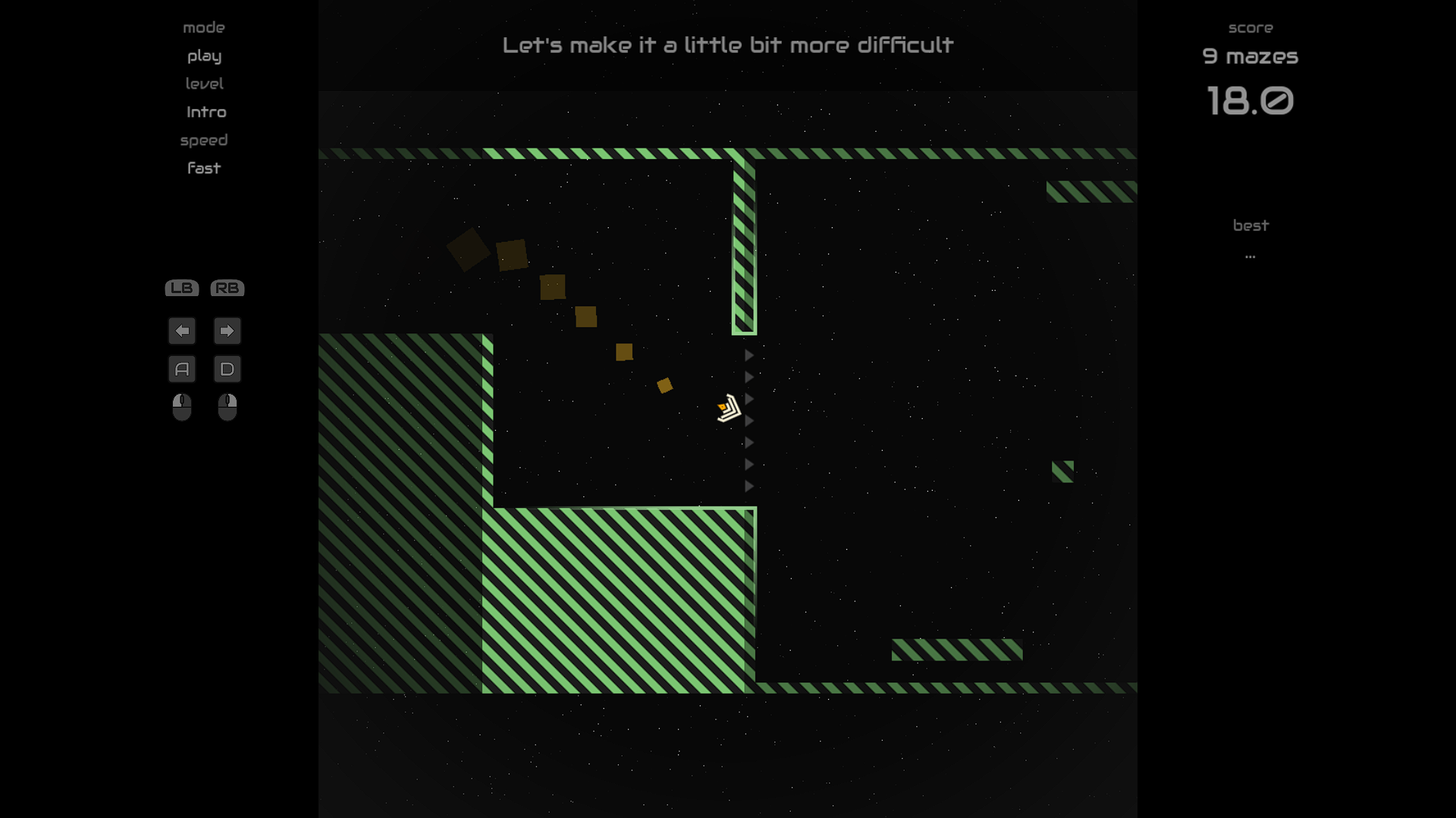 Ship v Maze is about as simple as they come; guide a ship through a maze, and try to last as long as possible until you hit a wall, at which point we hit restart and try again. It is, by nature, incredibly pick up and playable, moreish, and offers bite sized challenges that have suited me perfectly between other, bigger games.