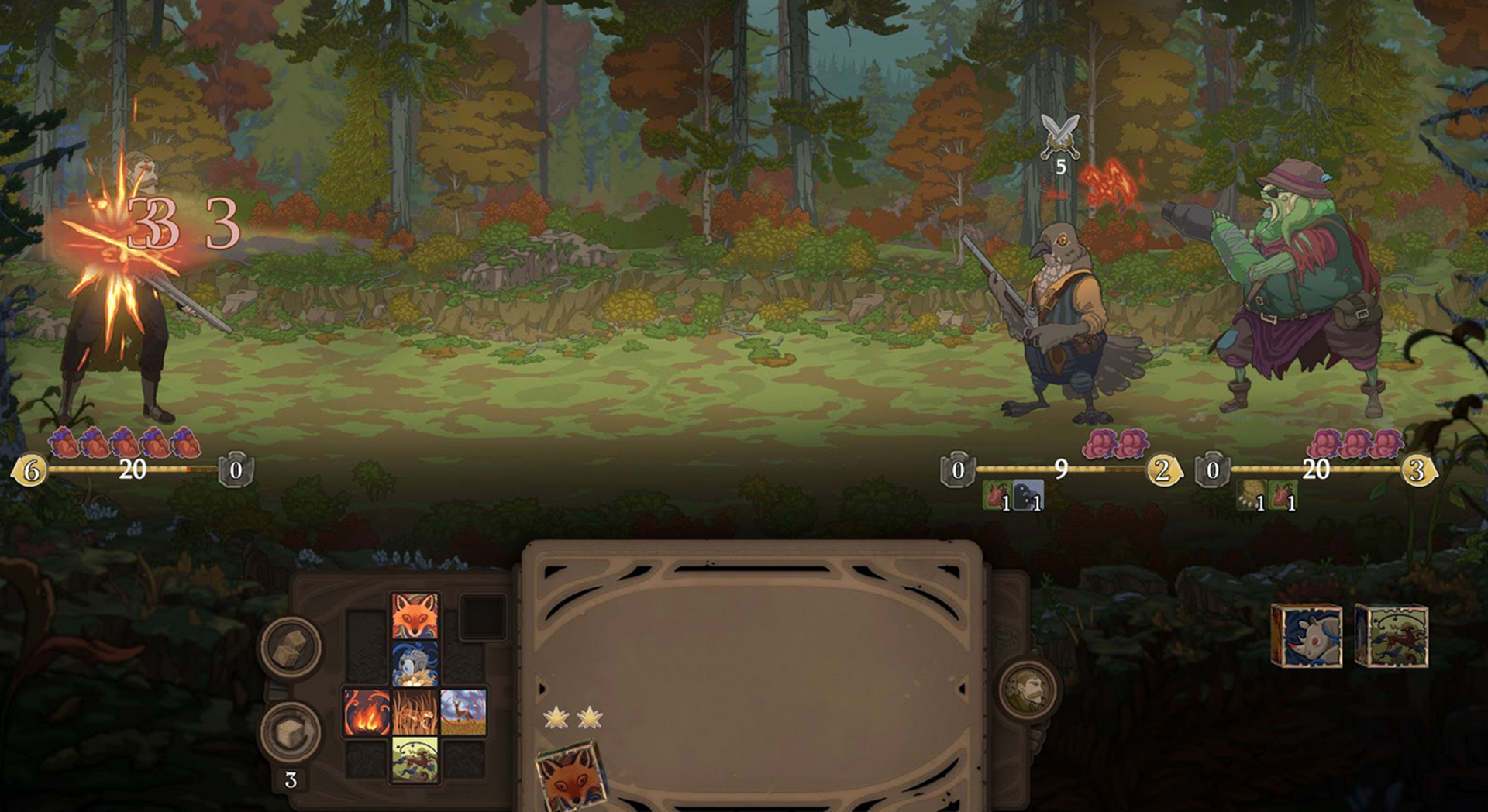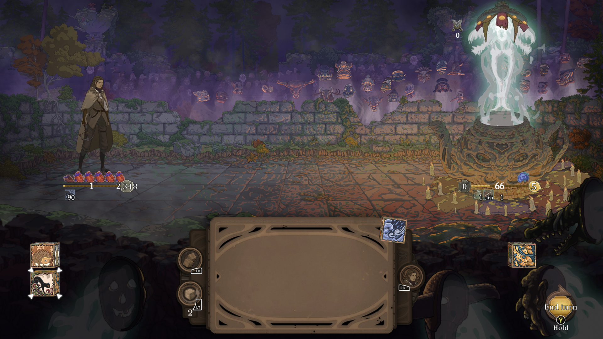 This, to me, is a core feature in roguelites – breaking the game to the point of delight. It can happen very early on in Tamarak Trail (before the first boss) and games like these need to anticipate this and think of counterbalances. Slay The Spire does it by making horrible mean-spirited final bosses, Monster Train keeps their playthroughs short and offers a difficult modulator. Tamarak Trail anticipates things like infinites by dragging down the pace of the whole second half of the game. This is done by monster being able to deal direct damage to the player’s hearts if the player doesn’t show restraint.