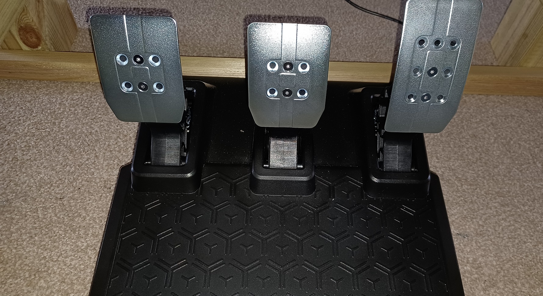 Setting up the wheel will need some consideration. If you’ve the space and money, then a full chassis is the ideal way to play (something I’ve yet to test, but Special Guest Pete has offered his for me to try out), but if that’s not an option then be sure to have a table or something to clamp it on to. The clamp is easy to use and set up – and comes included – though you’ll need something high enough to comfortably set the pedals underneath. The wheel itself also needs a power outlet, as well as a USB port on the console. These are fairly generous in length but again it’s something else to consider when looking at a wheel like this.