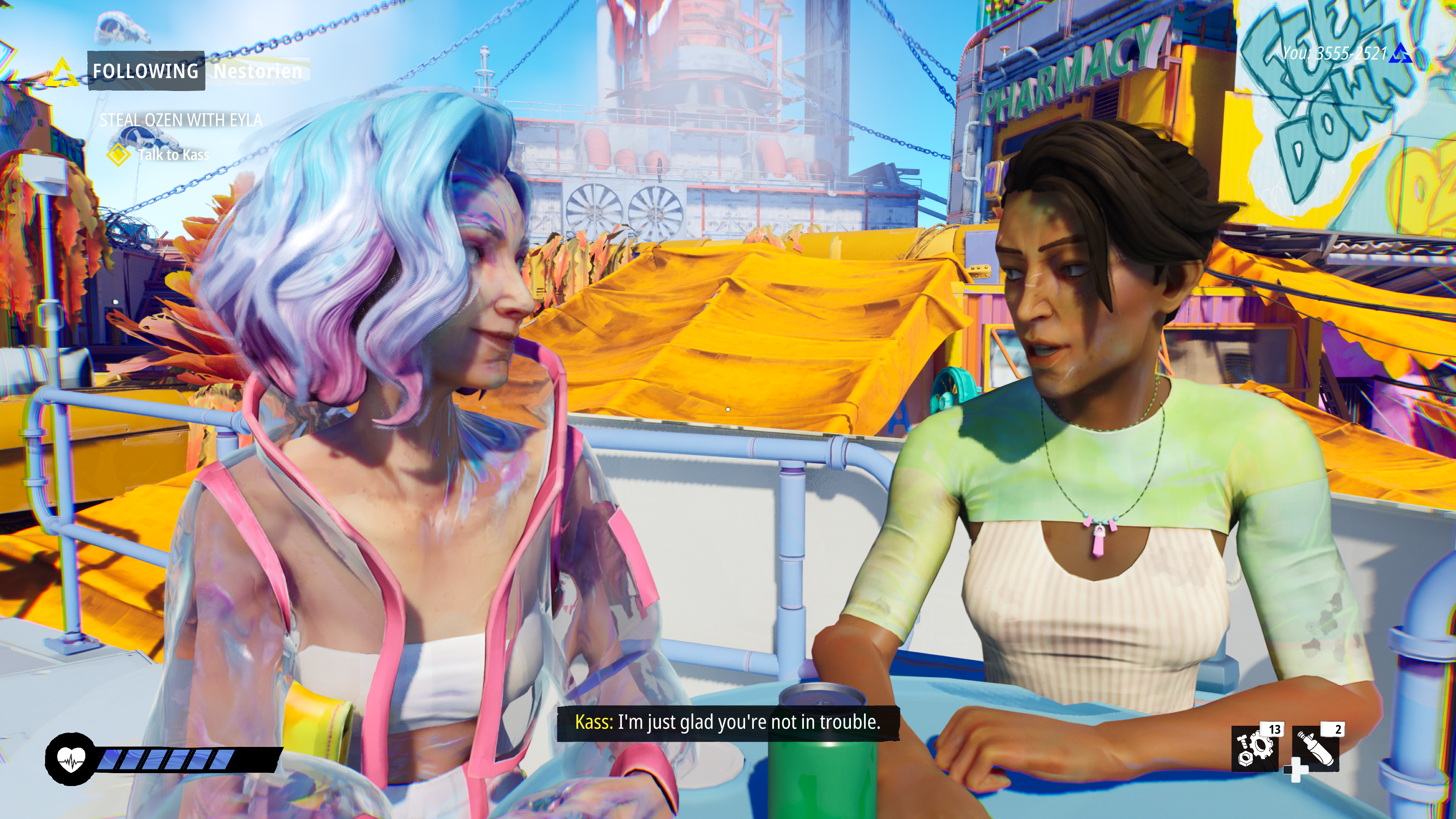 Despite the dire situation we find the world in, Tides of Tomorrow retains a fairly lighthearted presentation. Everything is very colourful, the world full of music and people to meet, and even when shit is hitting the fan it all feels a bit like a whimsical Dishonored. Again, the core message behind it is obviously very serious, and Tides of Tomorrow does at least get us thinking about that very real threat, though again not in a dour way.